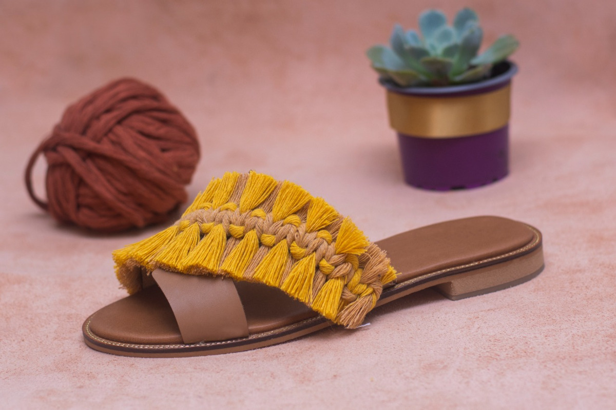 Sandalias elaboradas a mano, con tejido macramé, hechas con fibras naturales que no impactan el medio.